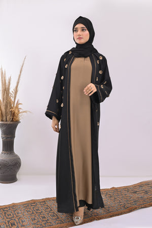 tep into effortless grace with this stunning maxi-style abaya, designed with intricate stone detailing for a refined and sophisticated look. The sleek silhouette drapes beautifully, offering both comfort and elegance. The shimmering stone embellishments add a touch of luxury, making it perfect for special occasions or everyday wear. The abaya features a front-open design for versatility and is paired with a matching hijab to complete the modest yet stylish ensemble. A perfect blend of tradition and modern elegance, this abaya is a must-have in every modest wardrobe.
