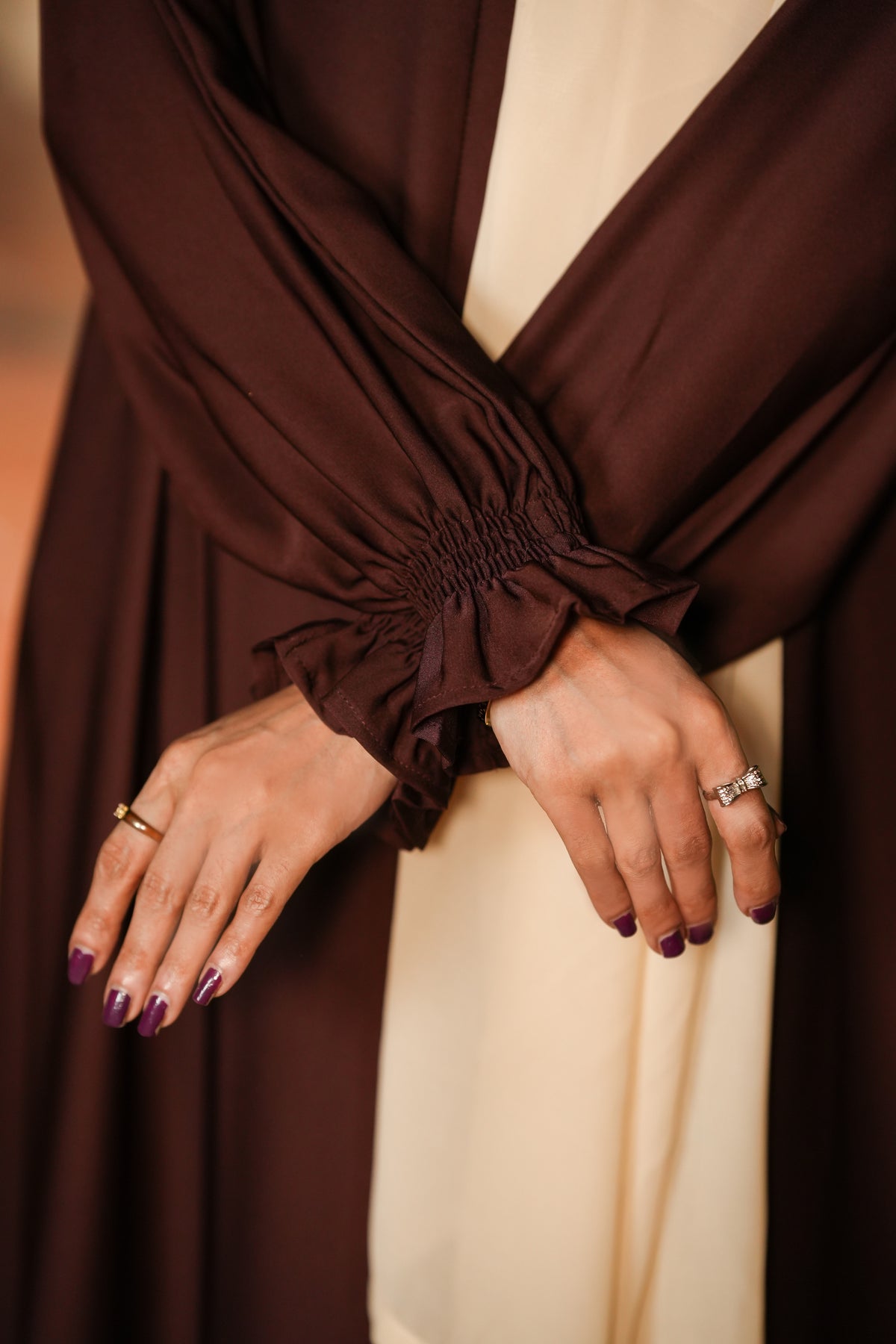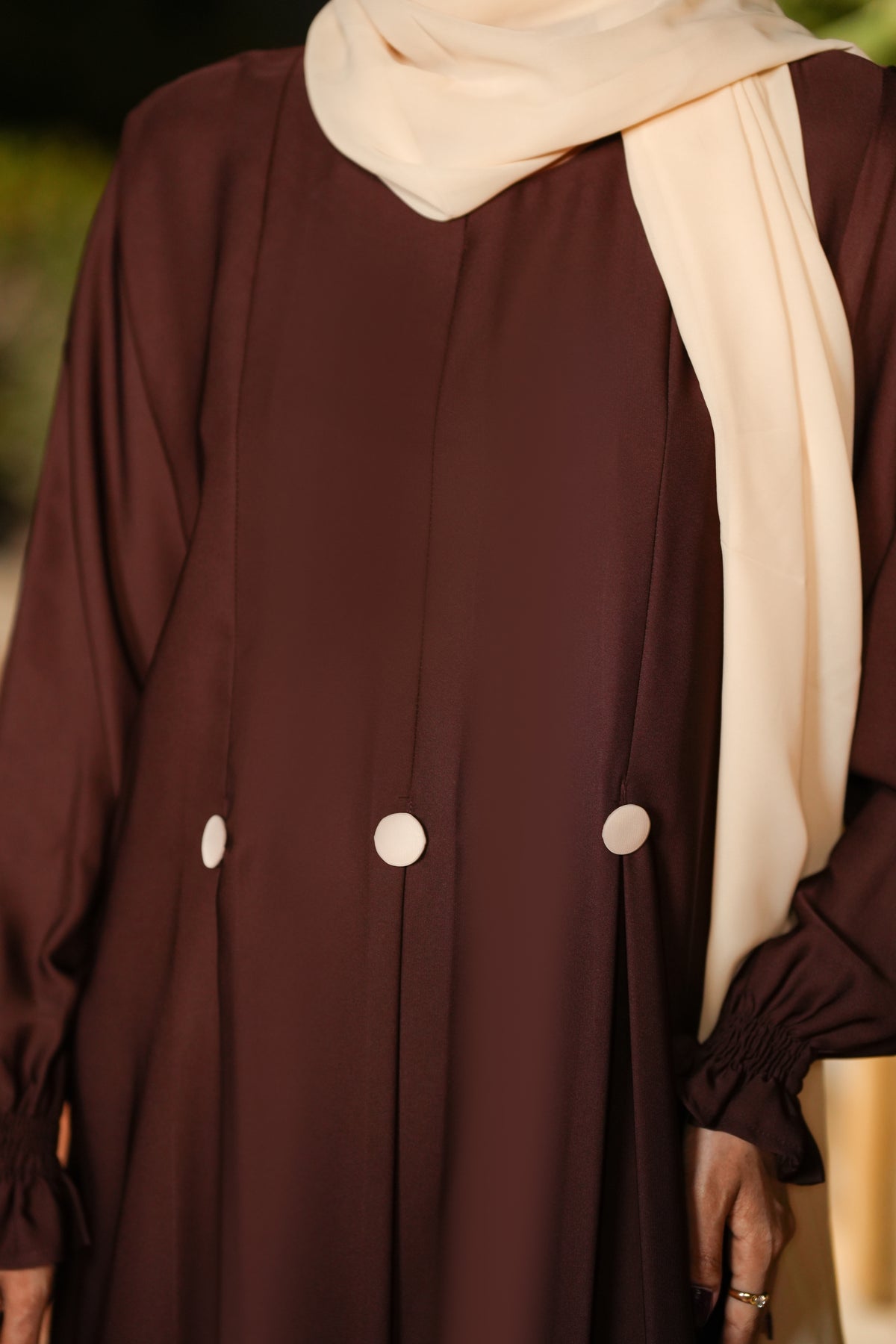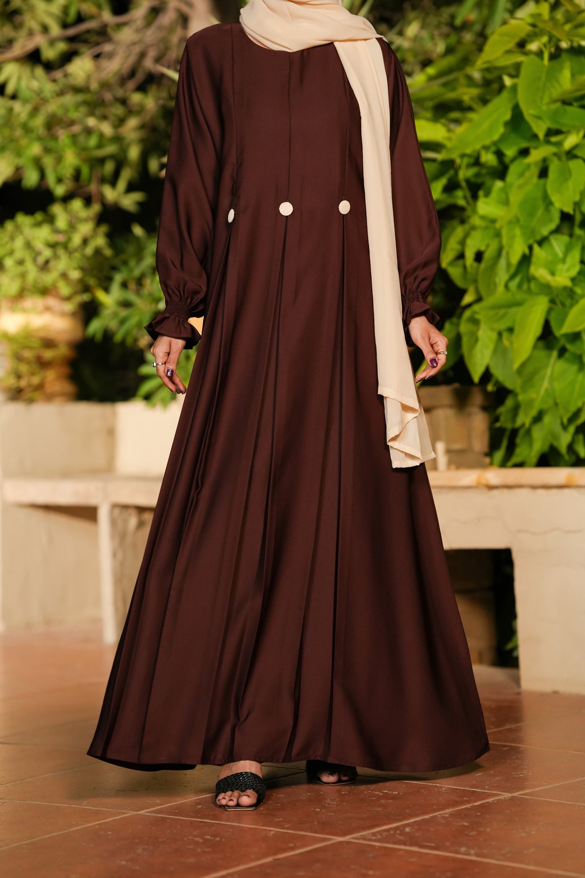 Chocolate Brown Buttoned Abaya – Nidah Fabric ✨