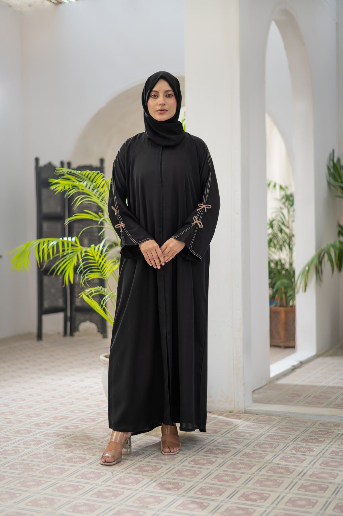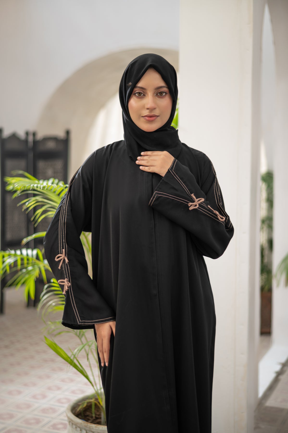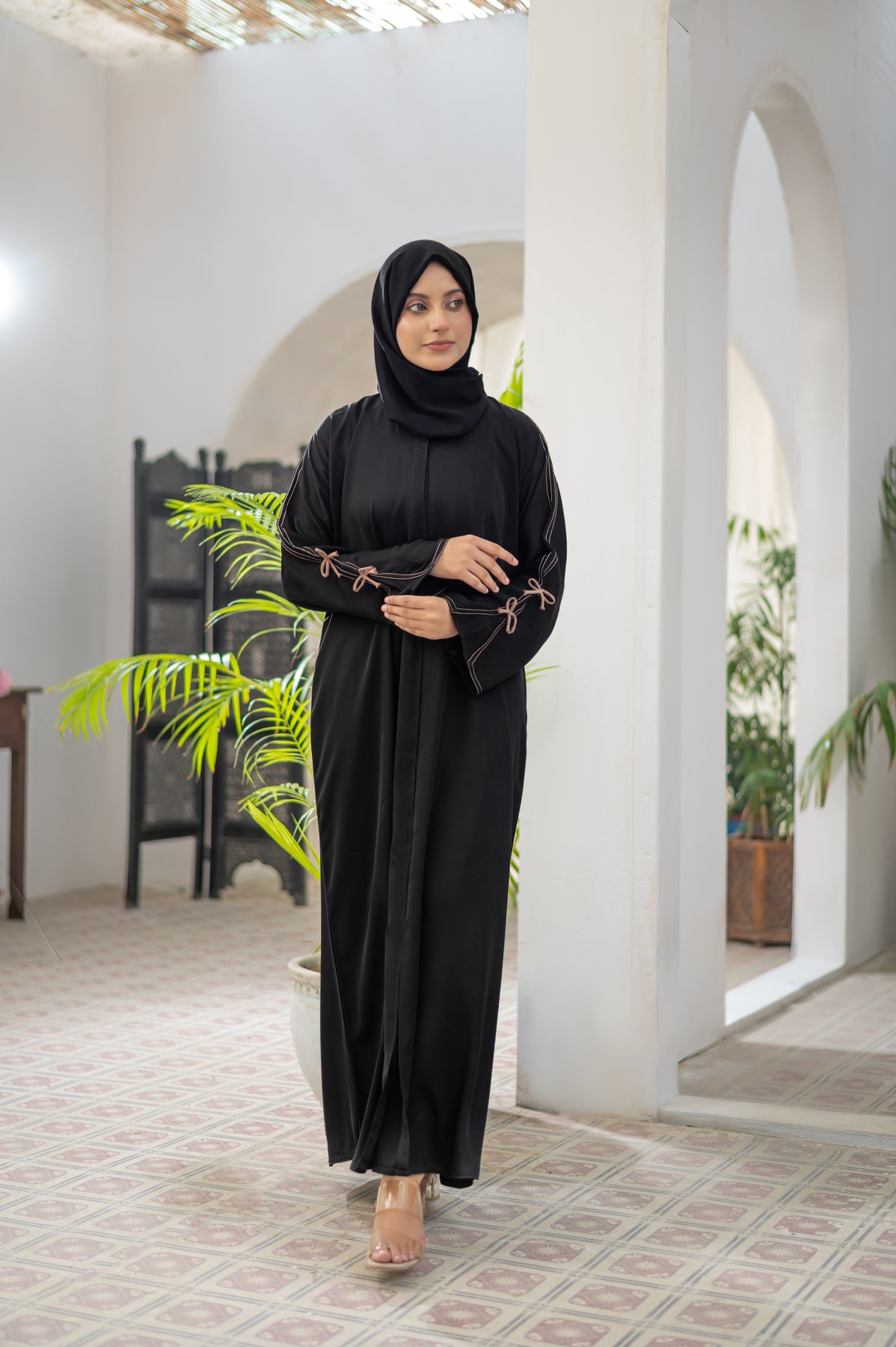 Elegant Black Abaya with Bow-Tie Sleeve Detailing ✨