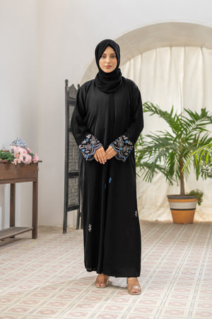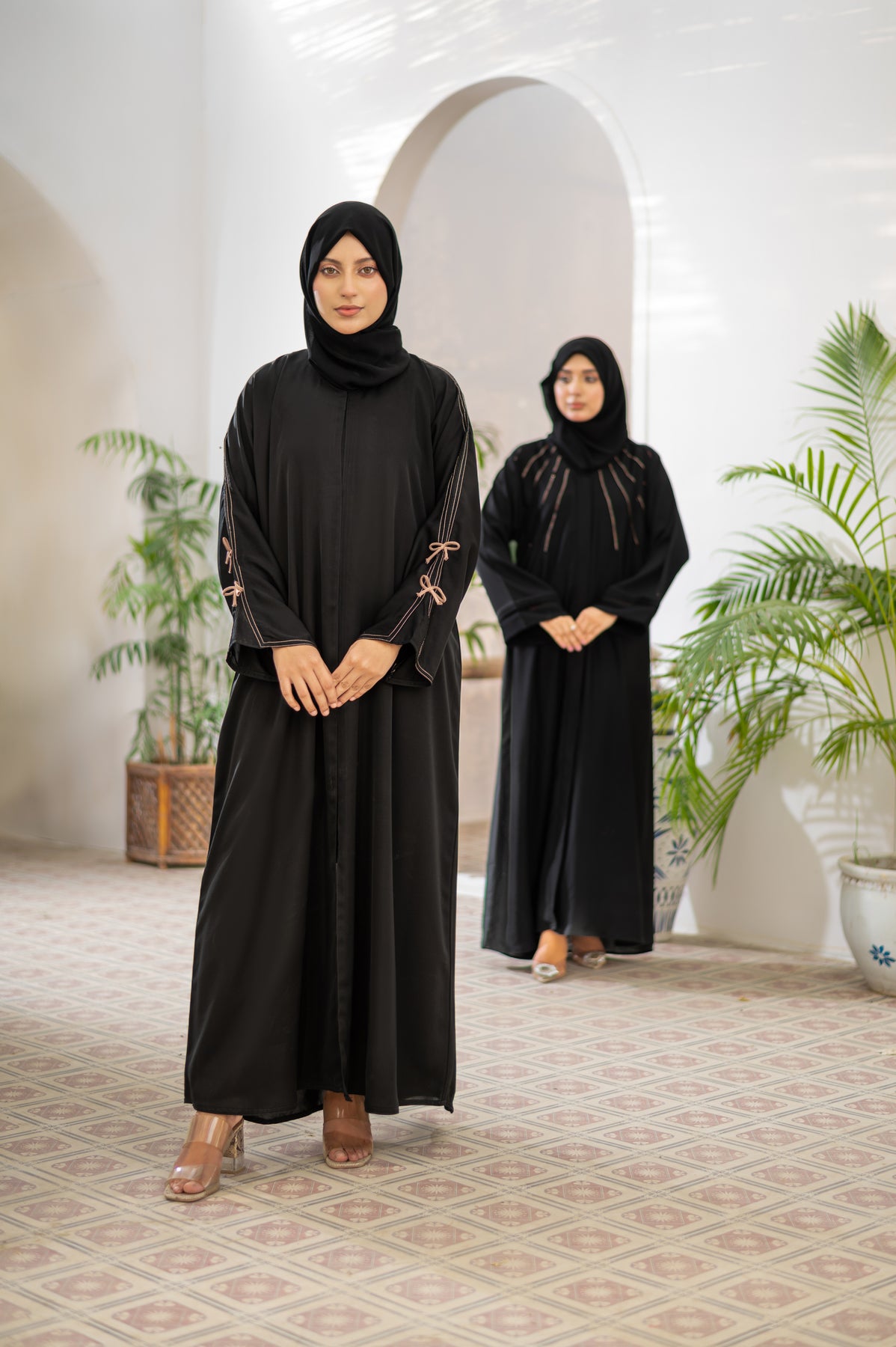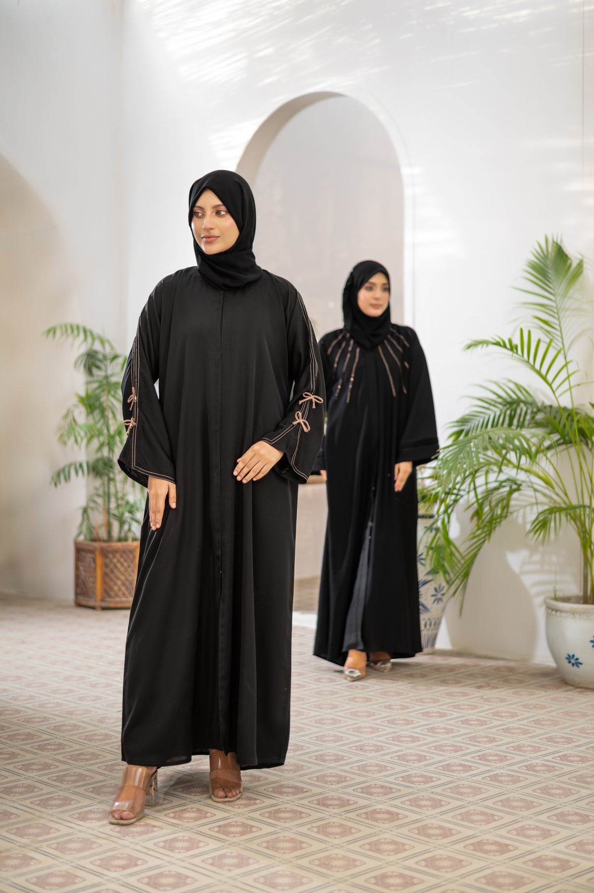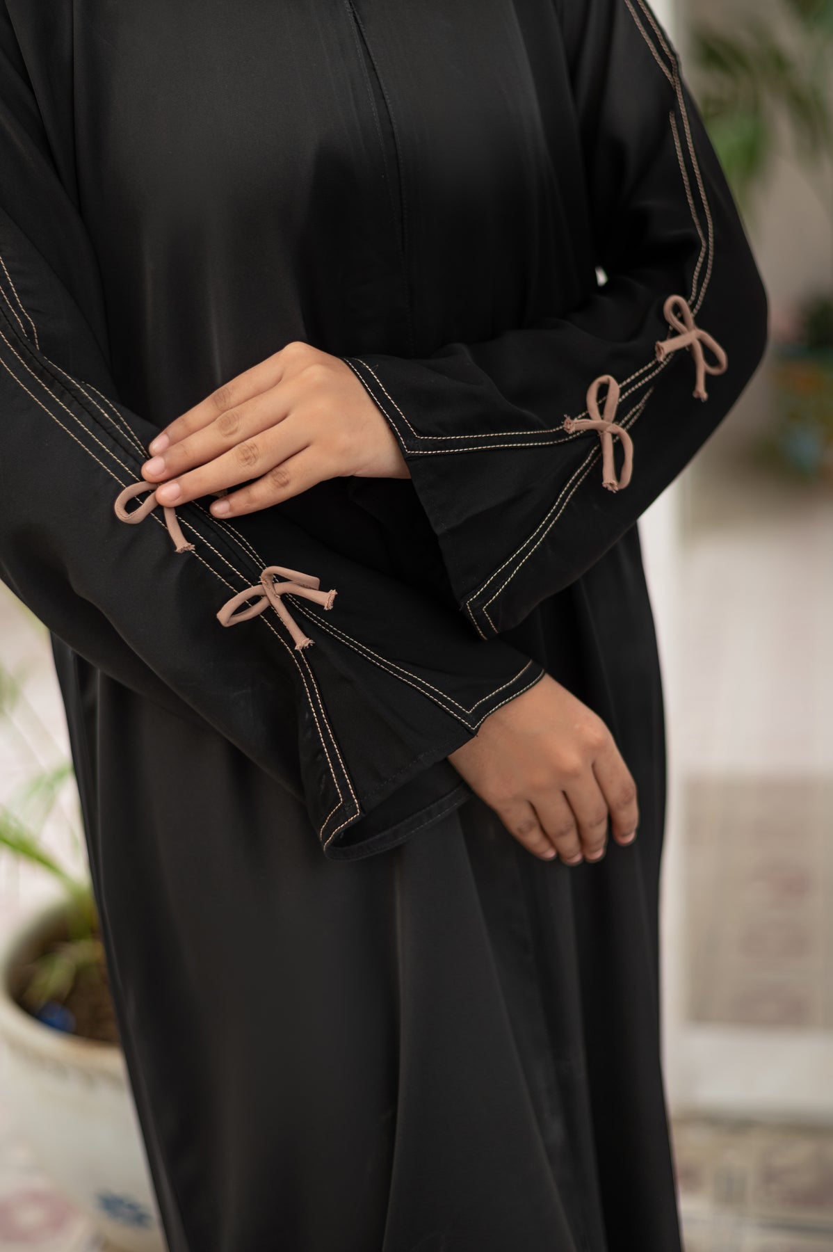 Elegant Black Abaya with Bow-Tie Sleeve Detailing ✨