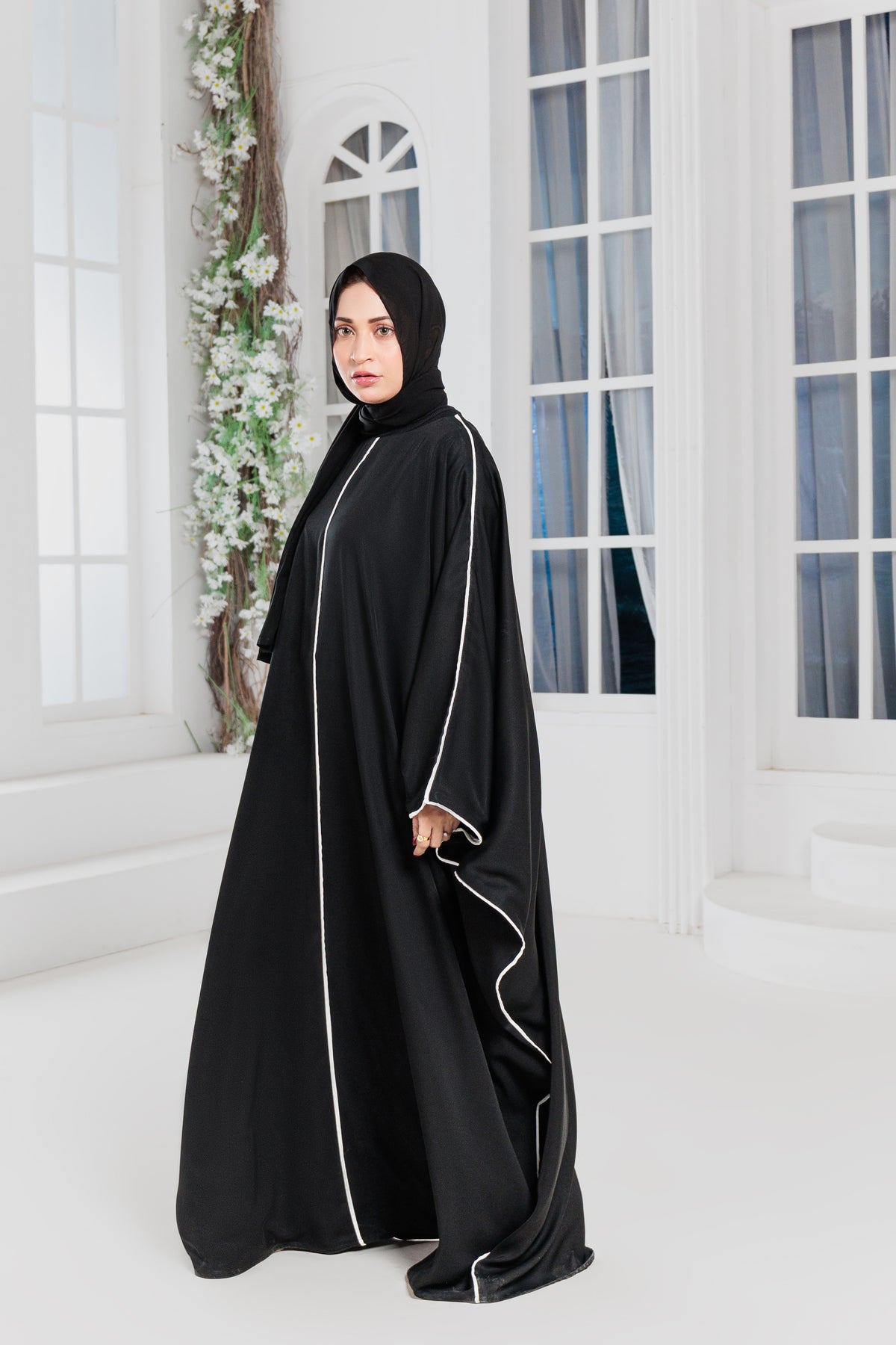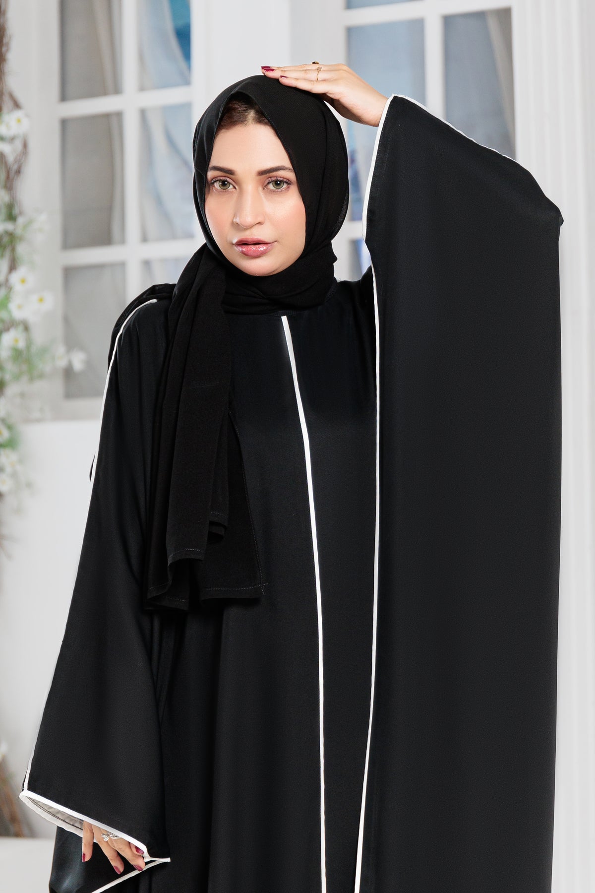 THE DESIGN OF ABAYA IS FRONT OPEN LOOKS LIKE JALBAB STYLE