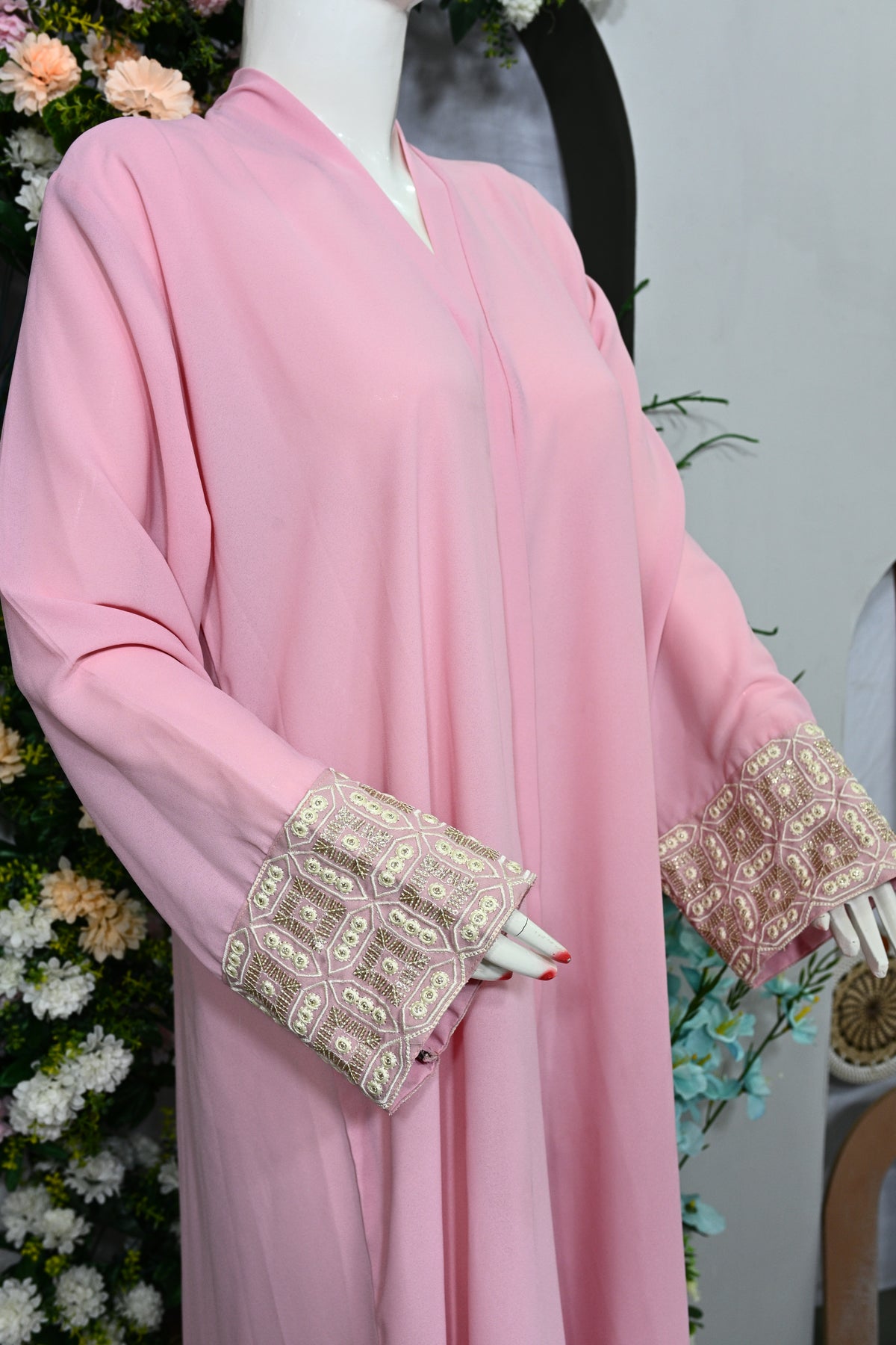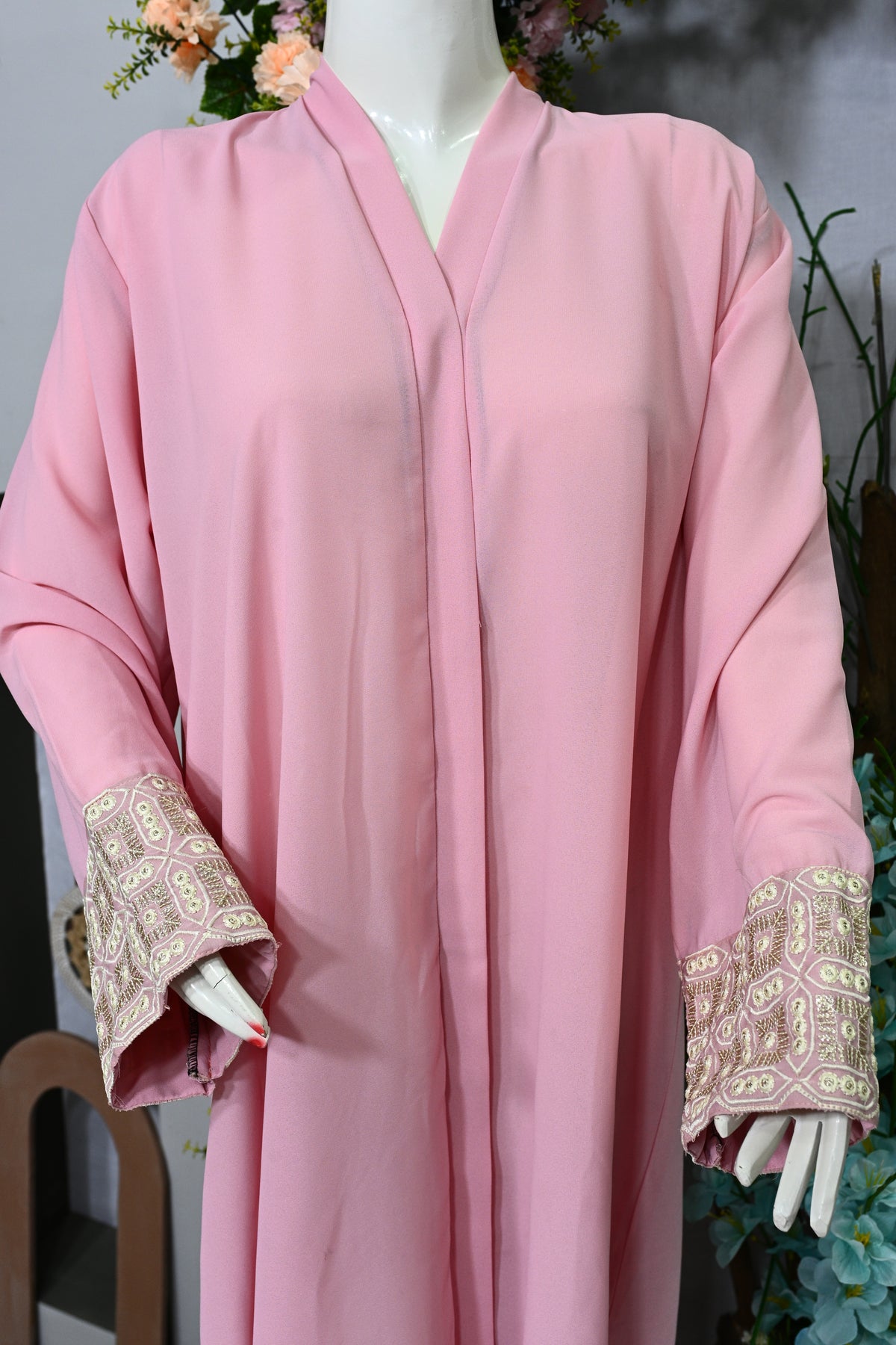 This exquisite long gown is crafted from premium Georgette fabric, known for its light weight and beautiful drape. It features elaborate and intricate Embroidery Work throughout the garment, making it perfect for weddings, parties, and festive events.