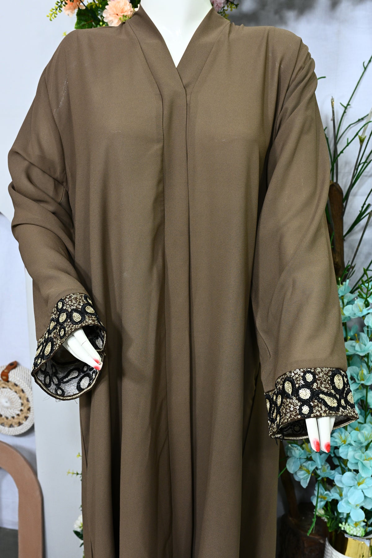 This exquisite long gown is crafted from premium Georgette fabric, known for its light weight and beautiful drape. It features elaborate and intricate Embroidery Work throughout the garment, making it perfect for weddings, parties, and festive events.